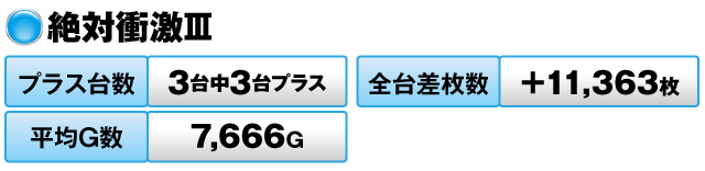 3台すべてがプラスで全台差枚数は+11,363枚を記録した。