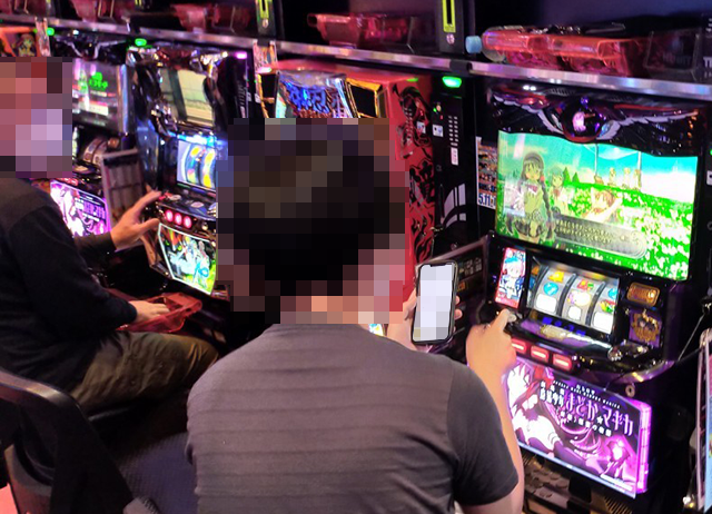 『SLOTバジリスク~甲賀忍法帖~絆2』や『パチスロ頭文字D』にも楽しげな姿があり、にぎやかな状況となっていた。
