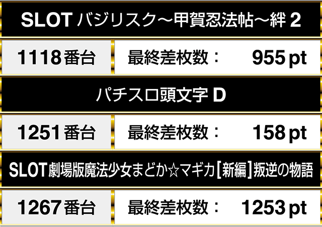 『SLOT劇場版魔法少女まどか☆マギカ[新編]叛逆の物語』の1267番台が1253pt!