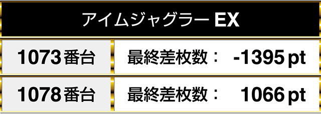 閉店時には『アイムジャグラーEX』の1台が1066ptを記録していた。