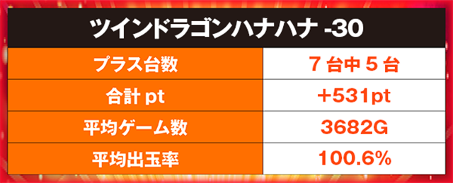 ツインドラゴンハナハナ-30は7台中5台がプラス!