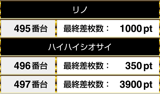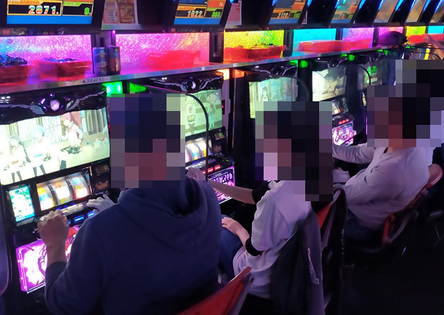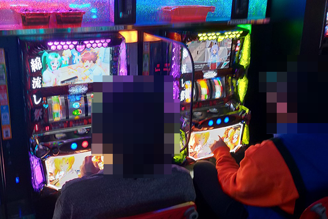 となりにある『押忍!番長3』の1台をあわせると、4台が並んでプラスptを記録した。