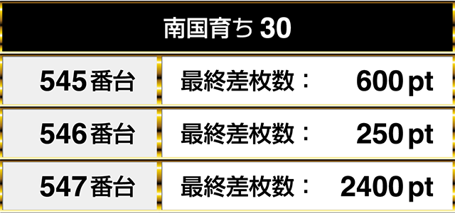 『南国育ち30』にもプラスptが固まり、なかには2000ptを上回る台もあった。