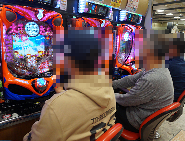 すべての台で楽しそうに遊技をおこなっているプレイヤーをキャッチ。
