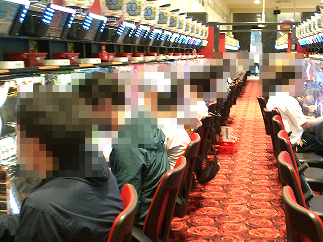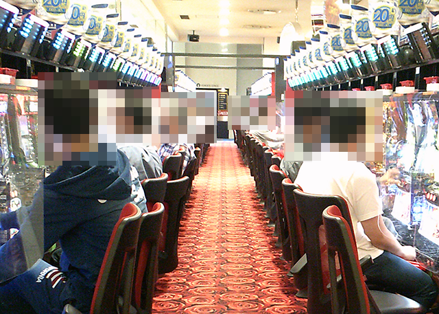 さまざまな機種が支持されており、パチスロのあちこちが楽しげなムードに包まれていた。