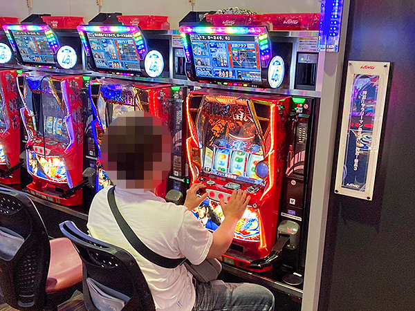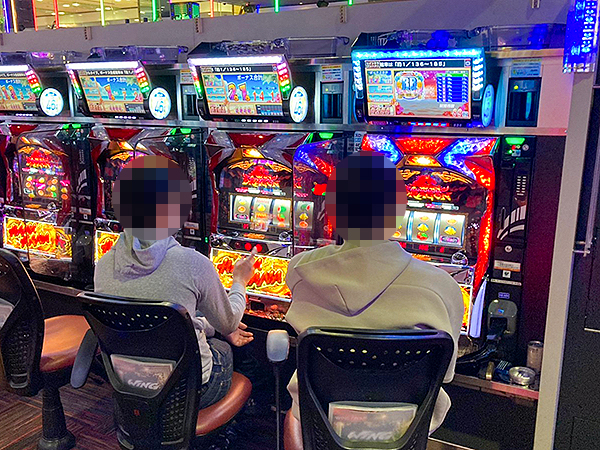 5円パチスロの様子をうかがうと、様々な機種で楽しそうにレバーを叩くプレイヤーが見受けられた。