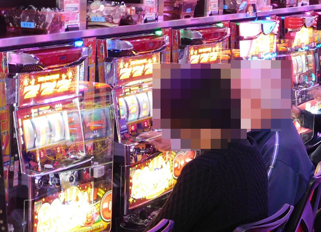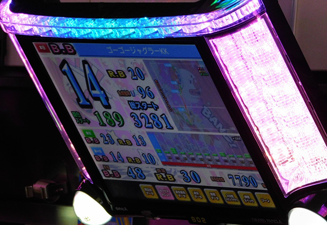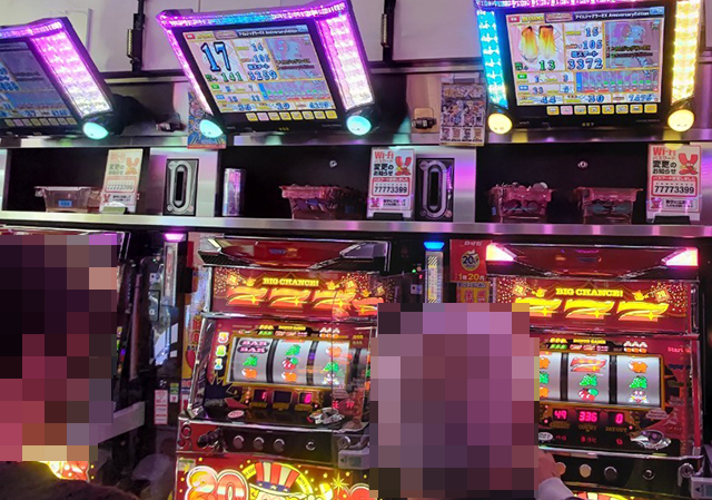 パチスロのシマをまわっていくと、『ゴーゴージャグラー』で活躍をするプレイヤーに目をひかれた。