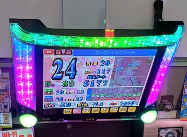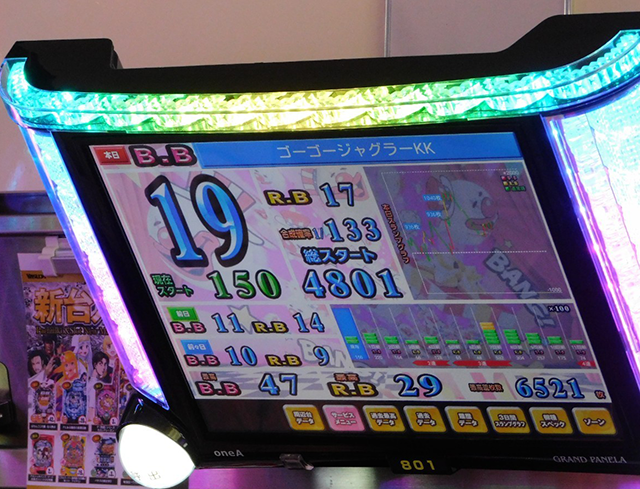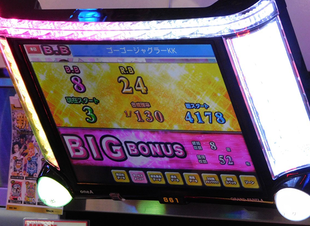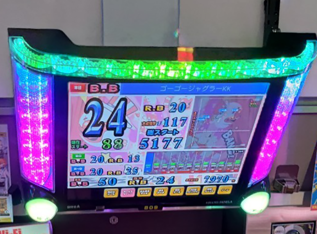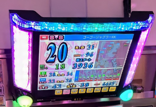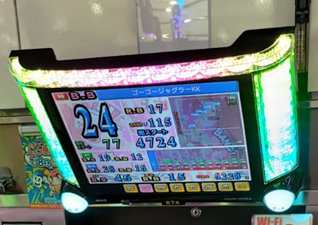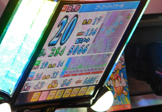 遊技を満喫しているような姿だけでなく、『ゴーゴージャグラー』のデータカウンターにも目を向けた。