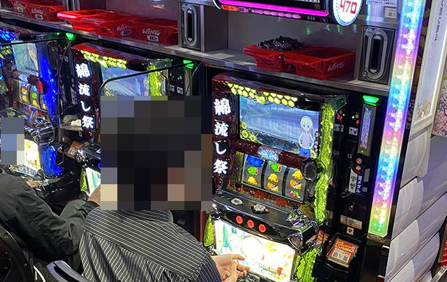 「パチスロひぐらしのなく頃に祭2」をはじめ、ホール全体がにぎわっている状況。さまざまなスペックの機種で、イキイキと遊技をおこなう姿を目にしている。