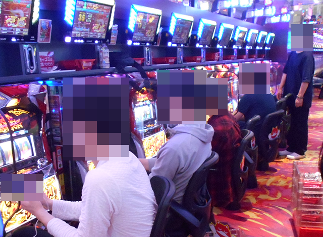 パチスロとパチンコのどちらも活況であり、プレイヤーたちは充実した時間を過ごしている様子。