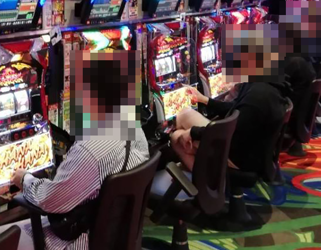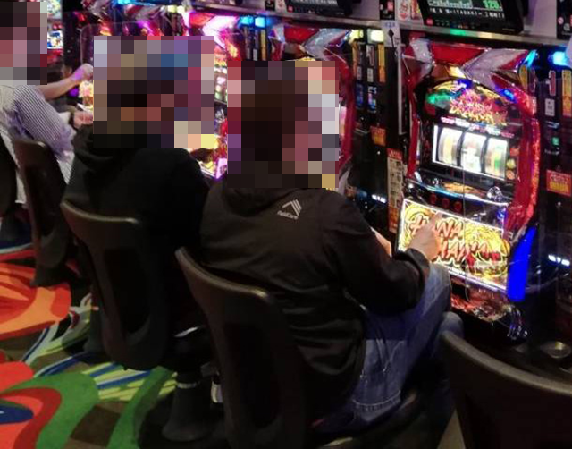 また、1000円/178枚パチスロに設置されているハナハナシリーズでも、満面の笑みを浮かべて遊技をおこなう姿に出会えた。