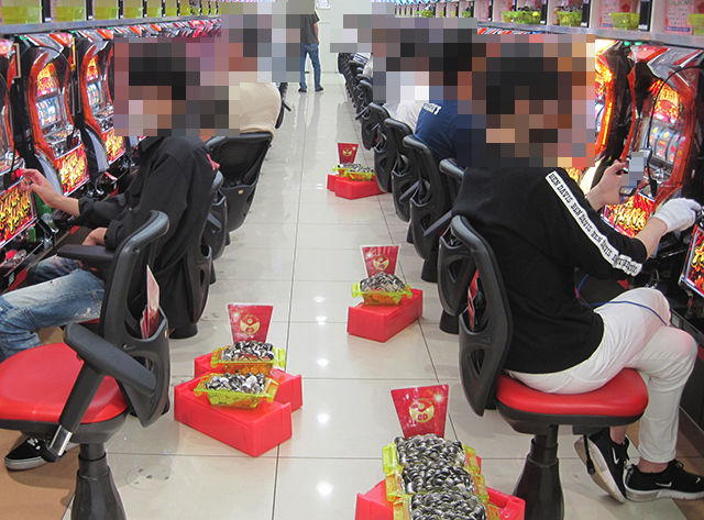 ホールには、「プレミアムハナハナ-30」や「ツインドラゴンハナハナ-30」など、合計5機種のハナハナシリーズが設置されている。