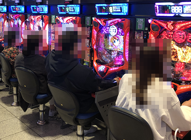 17時半を過ぎた頃には7台中6台が稼働し、大当り回数が37回や21回の台を確認した。