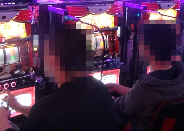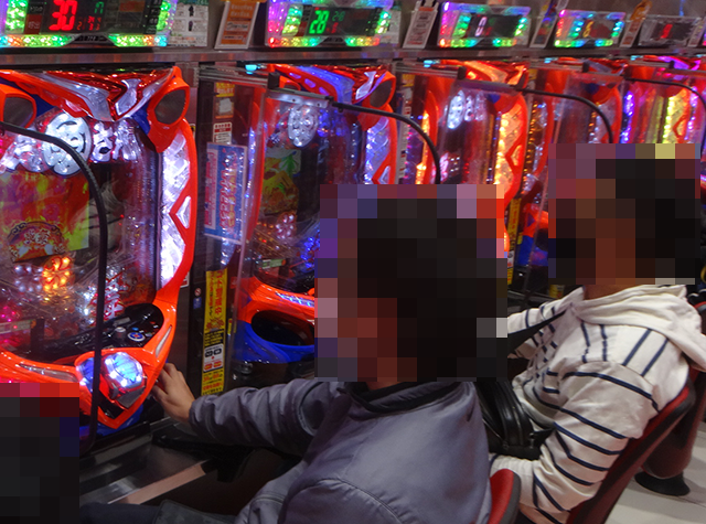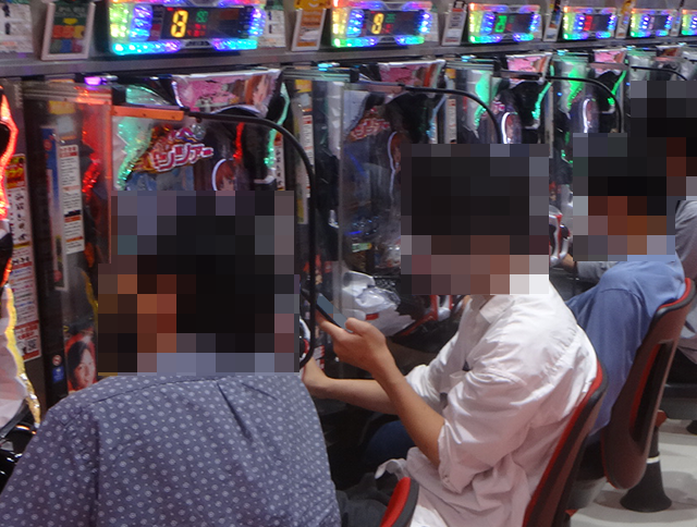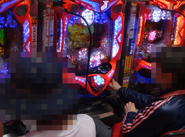 明るい表情で遊技を楽しんでいる姿は、にぎわうパチンコのなかで存在感を放っていた。