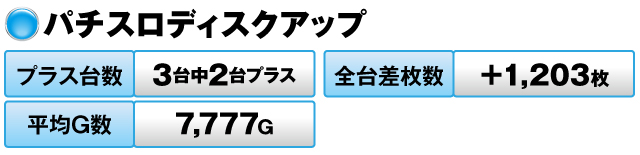 3台すべてがプラスで全台差枚数は+9,177枚、平均G数も9,125Gを記録した。