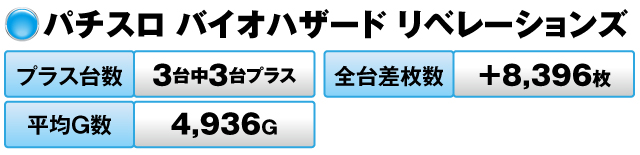 3台すべてがプラスで全台差枚数は+8,396枚を記録した。