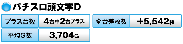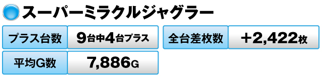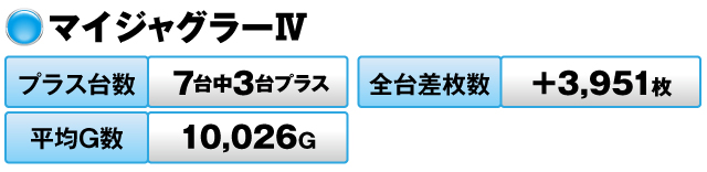 その他に、『パチスロ頭文字D』、『マイジャグラーⅣ』、『SLOTバジリスク〜甲賀忍法帖〜絆2』、『押忍!番長3』、『スーパーミラクルジャグラー』が、安定した挙動を見せていた。