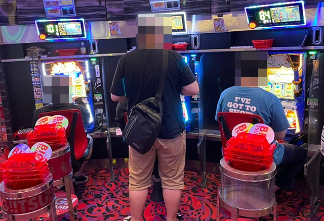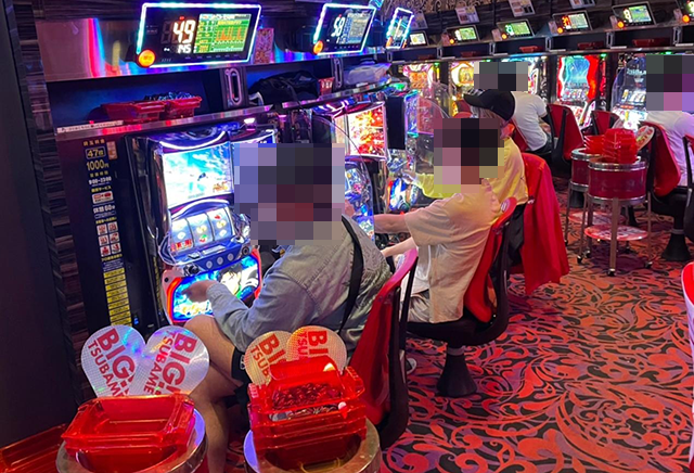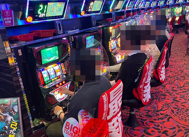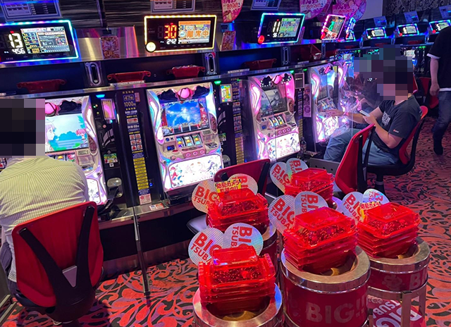全員が1箱以上となっており、なかには3箱以上で持ち玉遊技中の「スゴイ」プレイヤーの姿もあった。