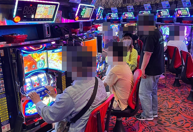 「鬼浜爆走紅蓮隊 狂闘旅情編」にも空き台はなく、プレイヤーたちが「スゴイ」明るい表情で遊技中!