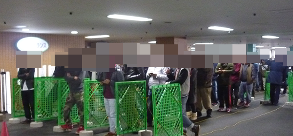 REAL取材Ωの2日目となる27日は、朝からおこなわれている入場抽選に約100人が参加。