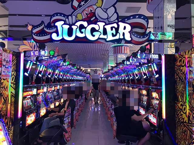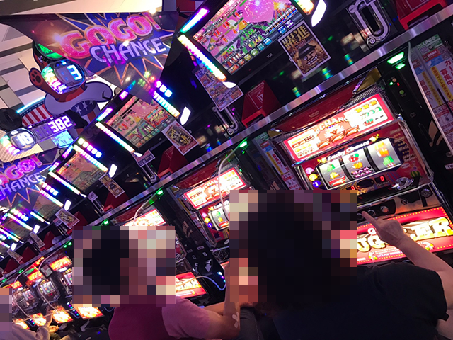 パチスロのシマをくまなくまわっていると、おなじ機種がズラリと並んでいるシマやバラエティーコーナーなど、随所に楽しそうな光景が広がっていた。