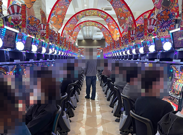パチンコとパチスロの各シマで、満面の笑みを浮かべて遊技をおこなっているプレイヤーを目にした。