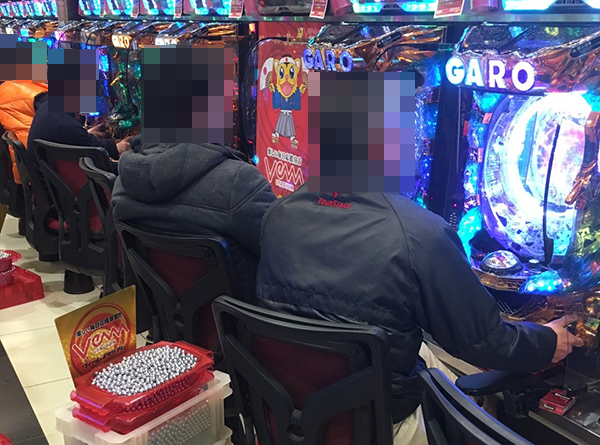 4円パチンコでは「CR牙狼 魔戒ノ花」が盛況となっており、楽しそうな笑顔をみせるプレイヤーが多数。