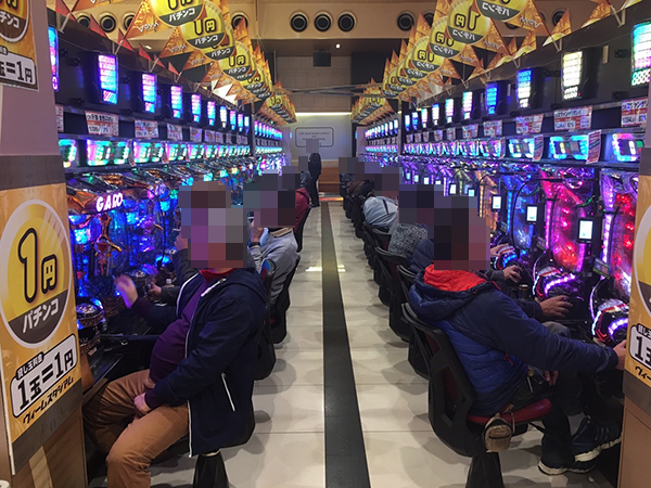 とくに1円パチンコの「CR牙狼 金色になれ」が幅広い層に支持されており、プレイヤーがみせる表情はとてもうれしそうであった。