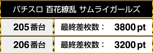 『パチスロ 百花繚乱 サムライガールズ』に3800pt、3200ptが連なる!!