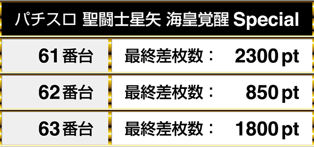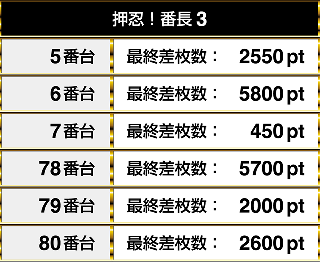『押忍!番長3』の5番台から7番台までに2550pt、5800pt、450ptが並ぶ!!