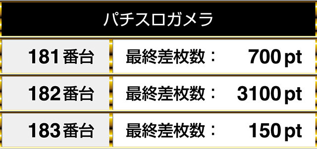 新台の『パチスロガメラ』も3100ptを含めて、3台が連なってプラスptとなった。