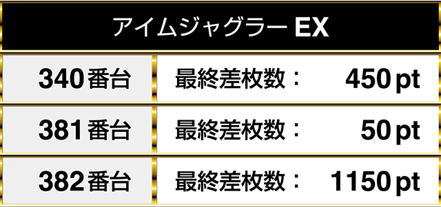 1日を通したデータをみると、『アイムジャグラーEX』の3台が連なってプラスpt!
