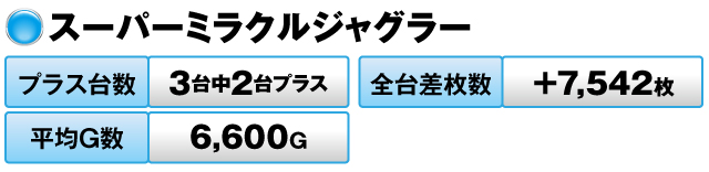 3台中2台がプラスで全台差枚数は+7,542枚を記録した。