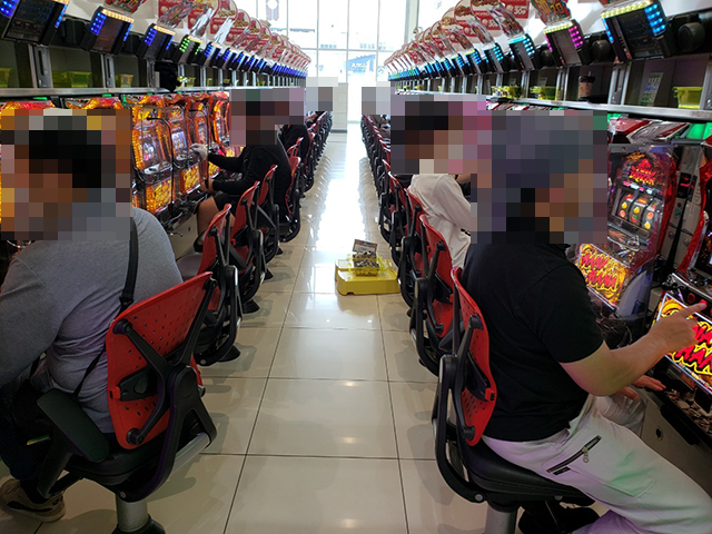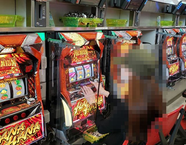 「プレミアムハナハナ-30」を包みこむ雰囲気も明るく、プレイヤーはイキイキとした様子。うれしそうな表情からも、機種の性能を引き出していることがうかがえた。