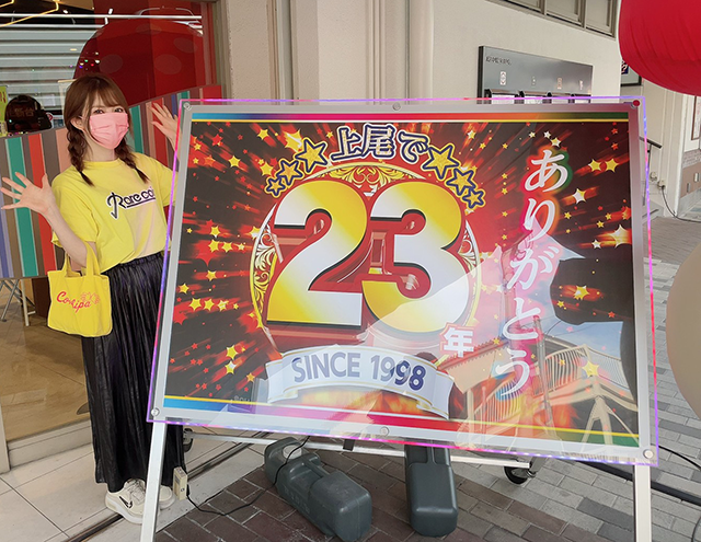 「南柏UNO」に着くと、オリジナルキャラクターのどんだけが美穂ちゃんをお出迎え!!