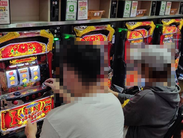 「グレートキングハナハナ-30」と「ハナハナ鳳凰-30」は8台ずつ設置されており、どちらも半数以上の台が埋まっていた。