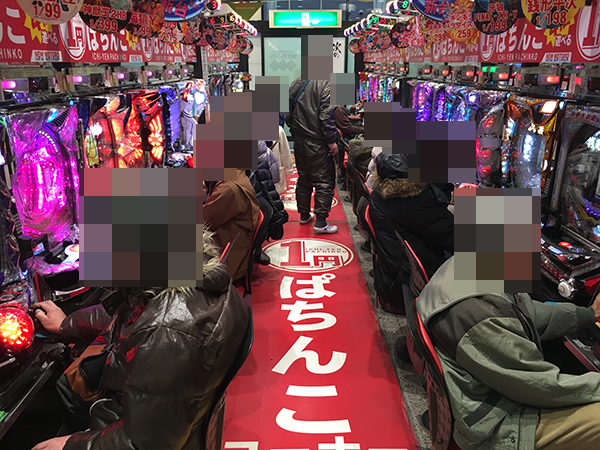 4円パチンコは特定の機種に人気が偏っているといった印象はなく、さまざまなスペックの機種が楽しまれていた。
