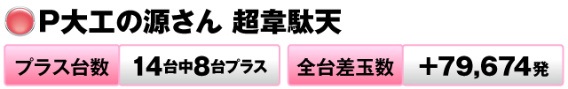 14台中8台がプラスで全台差玉数は+79,674発を記録。