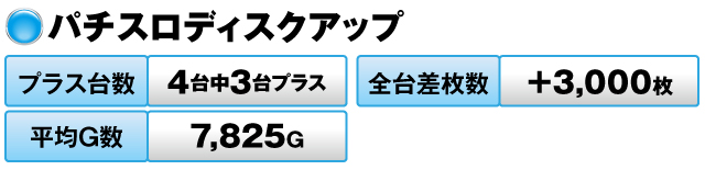 4台中3台がプラスで全台差枚数は+3,000枚だった。