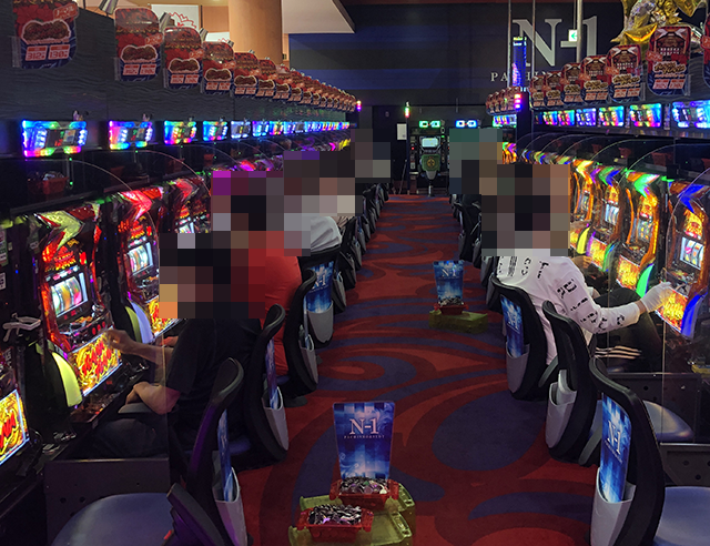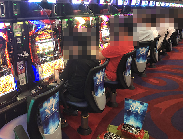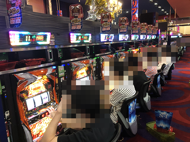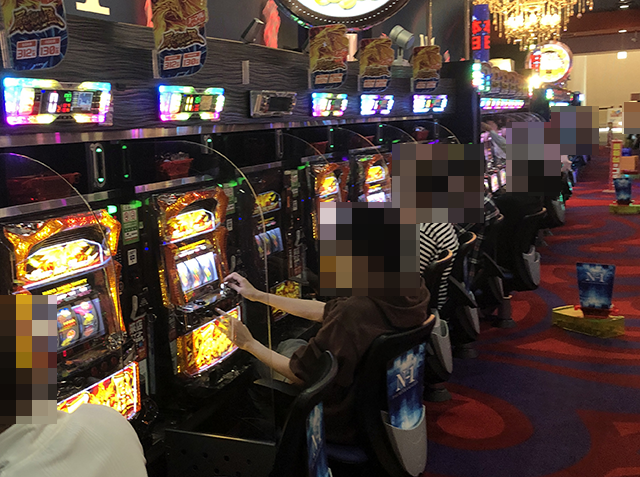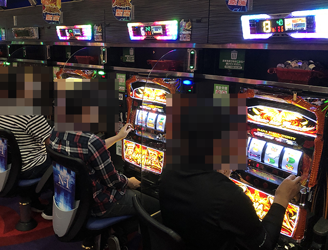 「ハナハナ鳳凰-30」で遊技をおこなっているプレイヤーの表情も明るく、機種が持つ魅力を味わえている様子。