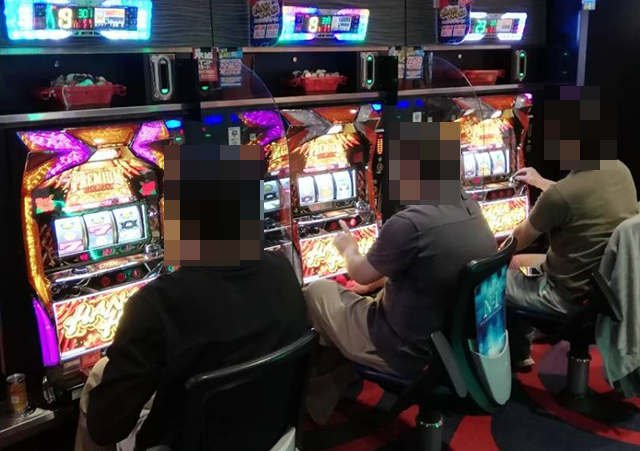 店内ではさまざまな機種が支持されており、パチンコとパチスロの両方に楽しげな光景が広がっていた。