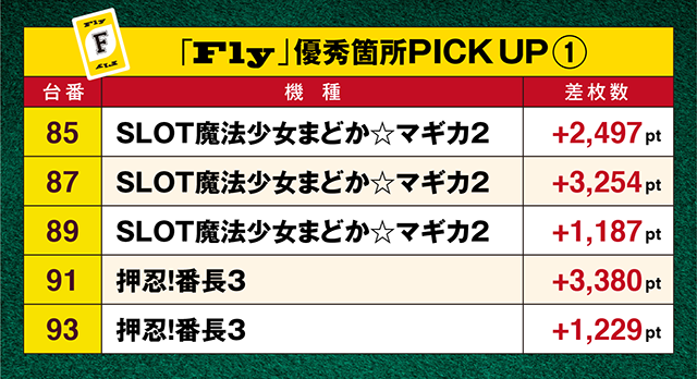 85番台から93番台までが飛び飛びでプラスptを記録し、全台が+1000ptオーバー!!