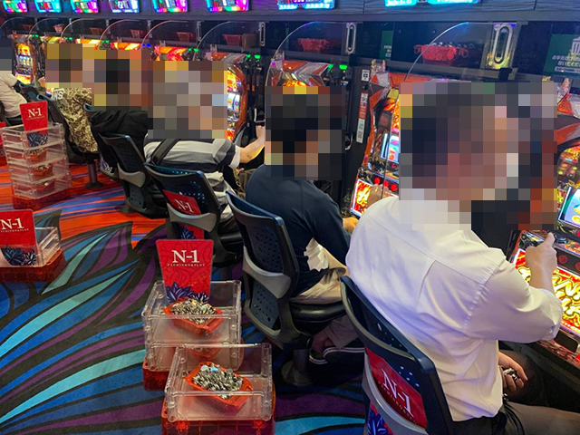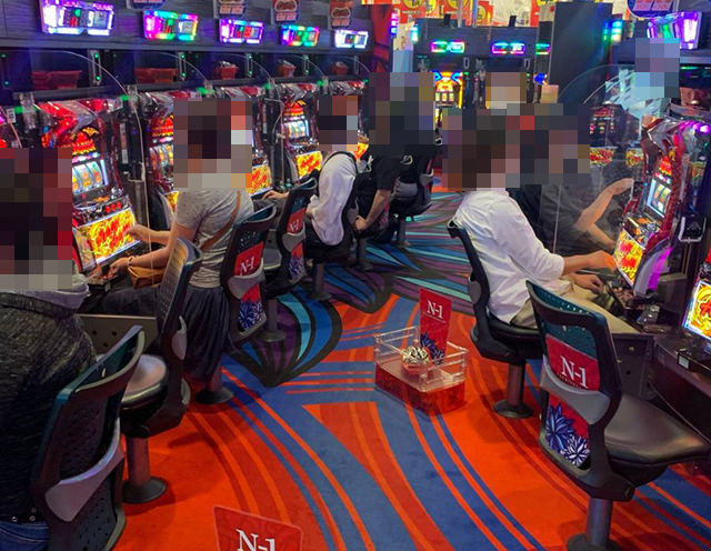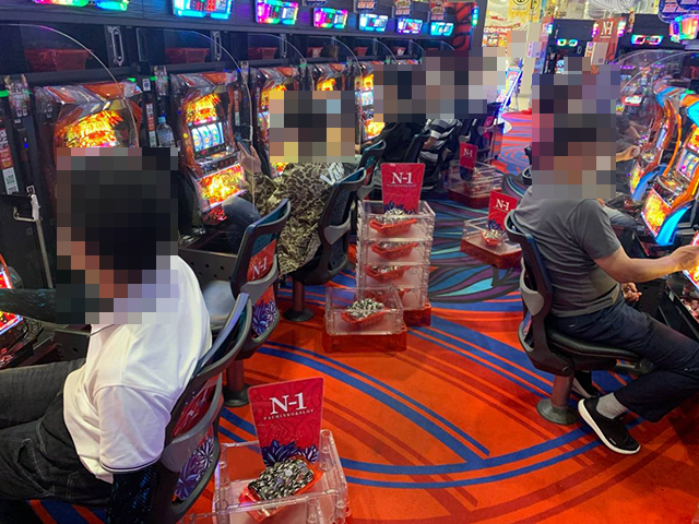 20台が設置されている「プレミアムハナハナ-30」も、約7割が稼働するほどに人気。笑顔も多く、ひときわ華やかな光景が広がっていた。