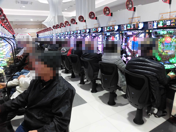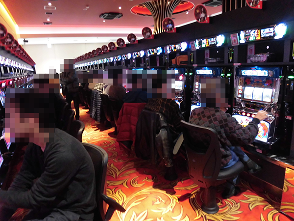 「パチスロ北斗の拳 強敵」や「バジリスク~甲賀忍法帖~絆」はフル稼働と大盛況。