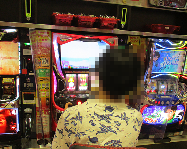 新台の「パチスロガメラ」においても、プレイヤーは満面の笑みを浮かべて遊技をおこなっていた。