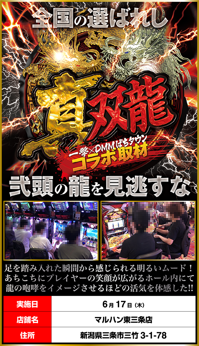 「マルハン東三条店」を舞台に「真双龍」をおこなった。