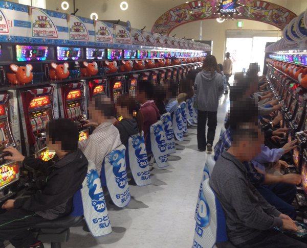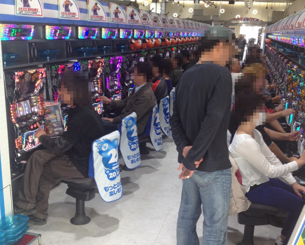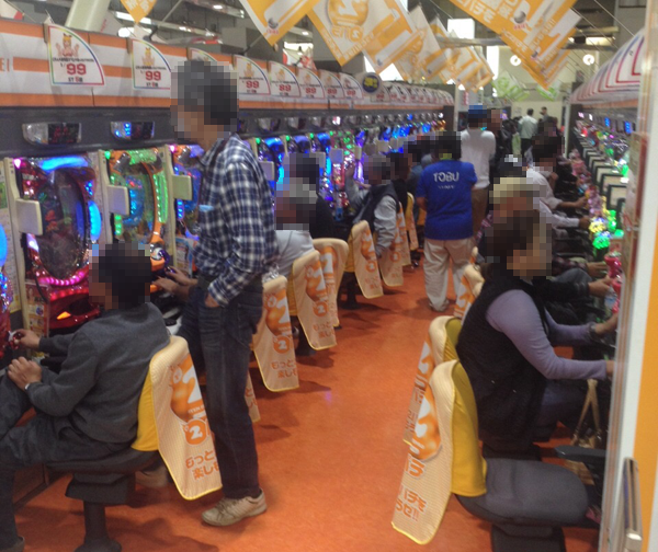 14時頃になるとすべてのコーナーでプレイヤーの数はさらに増えており、とくに5円パチスロと朝イチから人気の1円パチンコ、ミニパチ(0.5円)は空き台があまり見られないほど盛況だった。