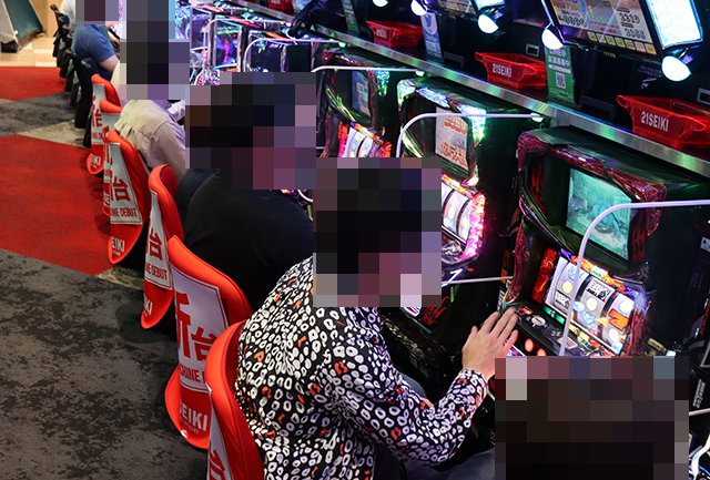 魅力的に映る場所がいくつもあるなかで、とくに目をひかれたのは、満席となっていた「パチスロガメラ」だ。