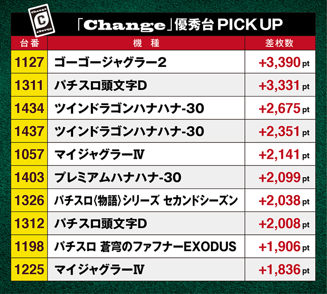 「ツインドラゴンハナハナ-30」の2台と「プレミアムハナハナ-30」の1台も+2,000ptを上回るなど、ハナハナシリーズにもみどころが多かった。