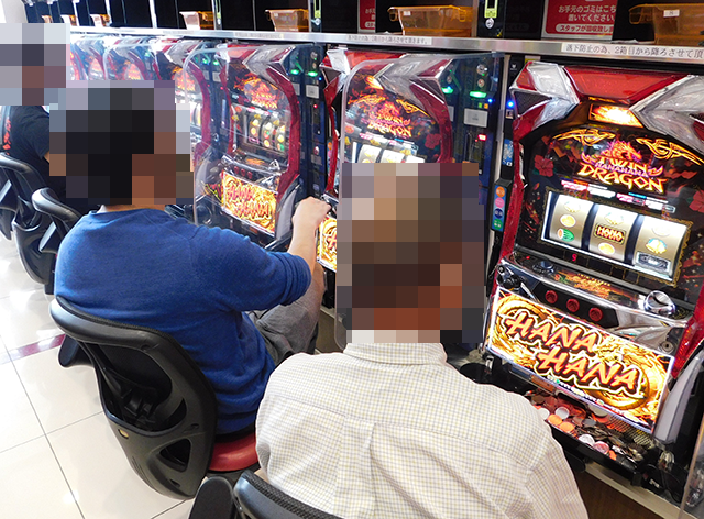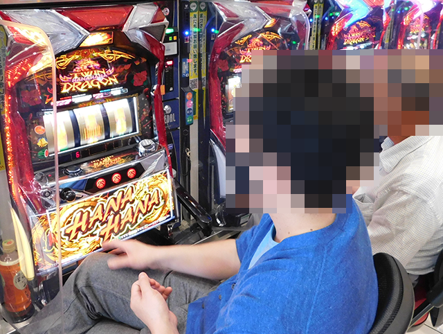確認時は空き台があったものの、稼働率以上の活気が感じられた「ツインドラゴンハナハナ-30」。プライベートで来店していれば、台を確保して一緒に遊技をおこないたいと思えた。